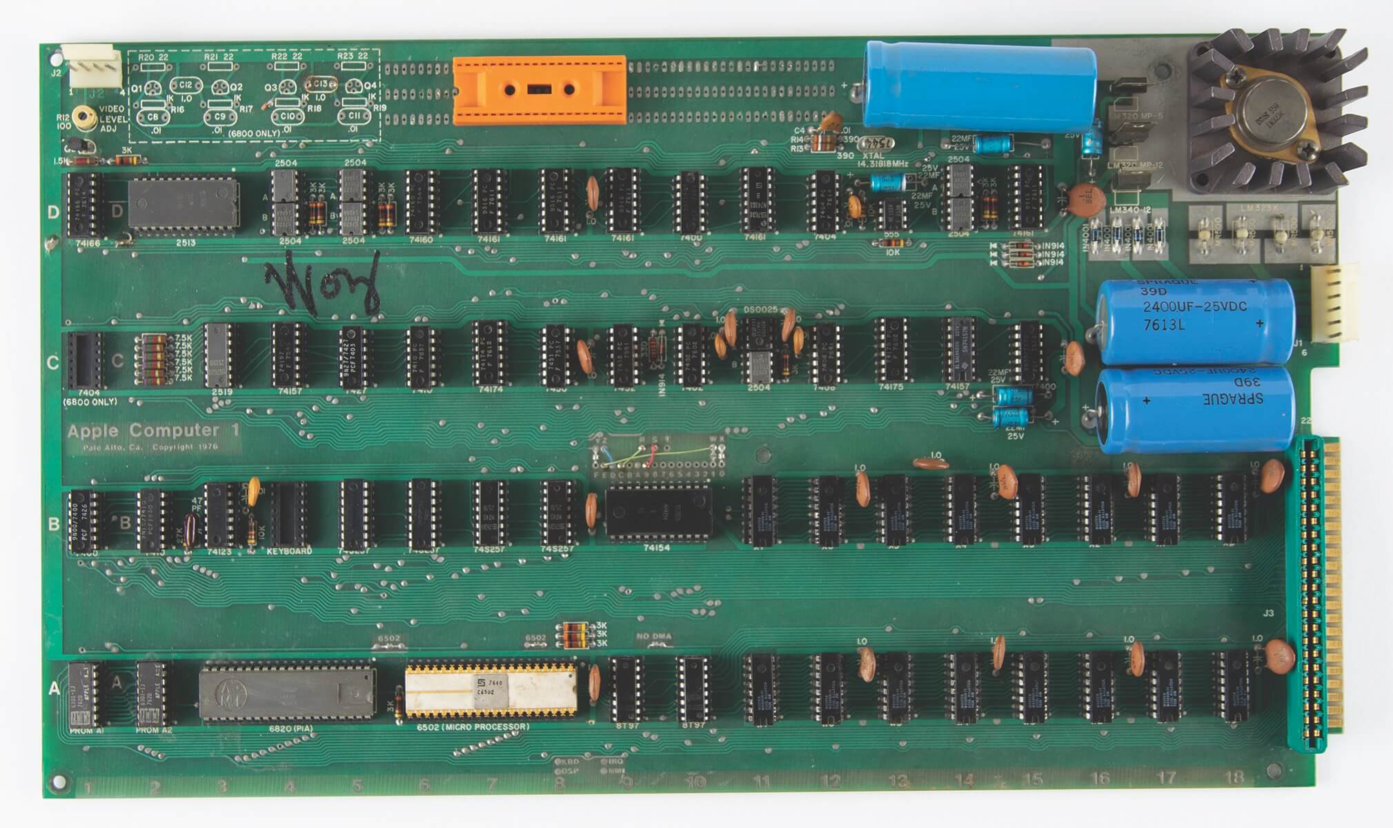 Additional restoration of the Apple-1 board and the ACI was done by expert Corey Cohen in November 2022. Signed by Woz.