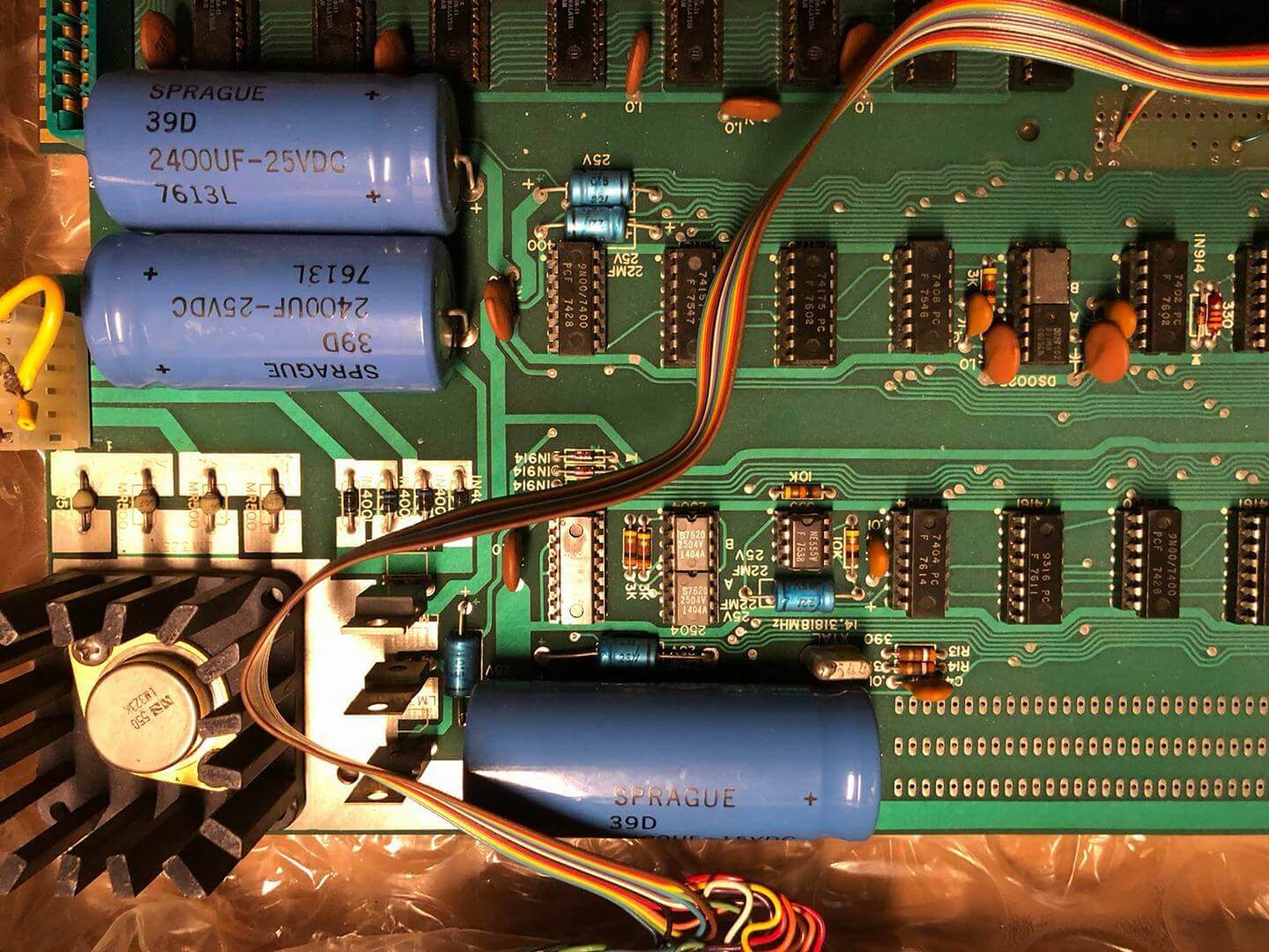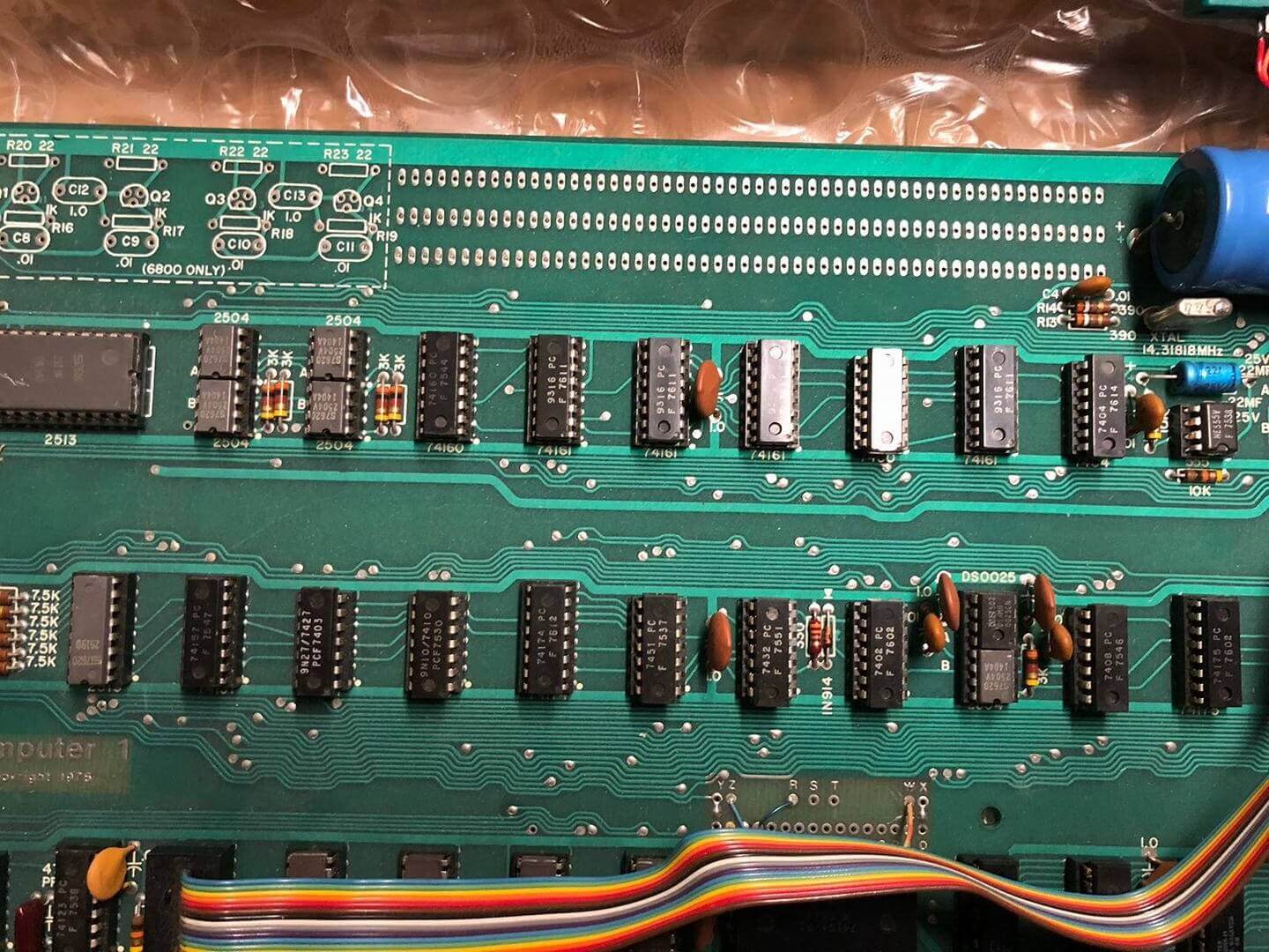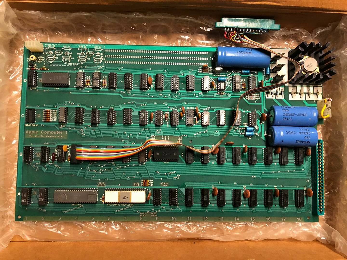 White ceramic MOS MCS 6502 CPU (1576), plastic AMI S6820 PIA (7601), 8 KB plastic DRAM.
