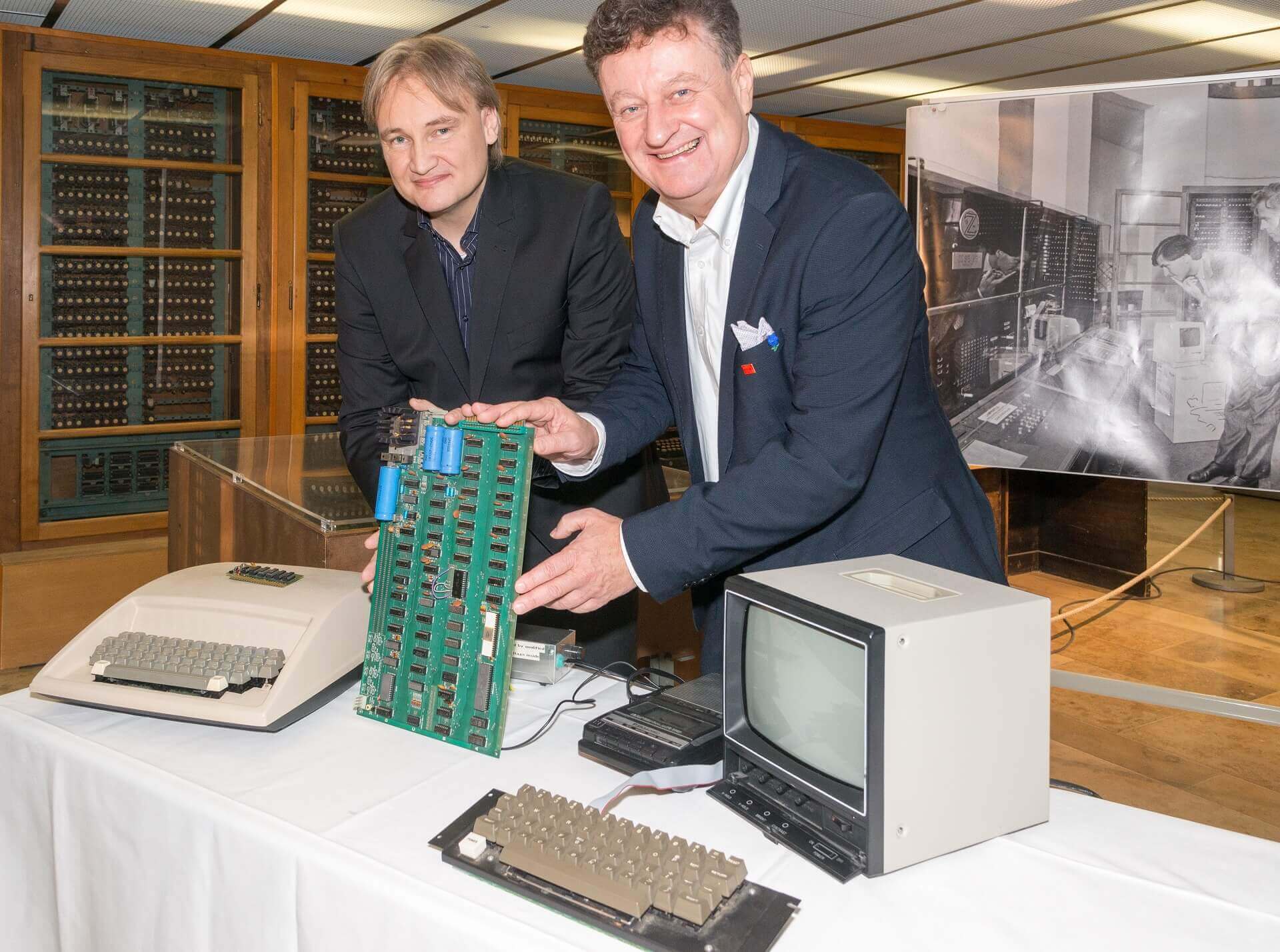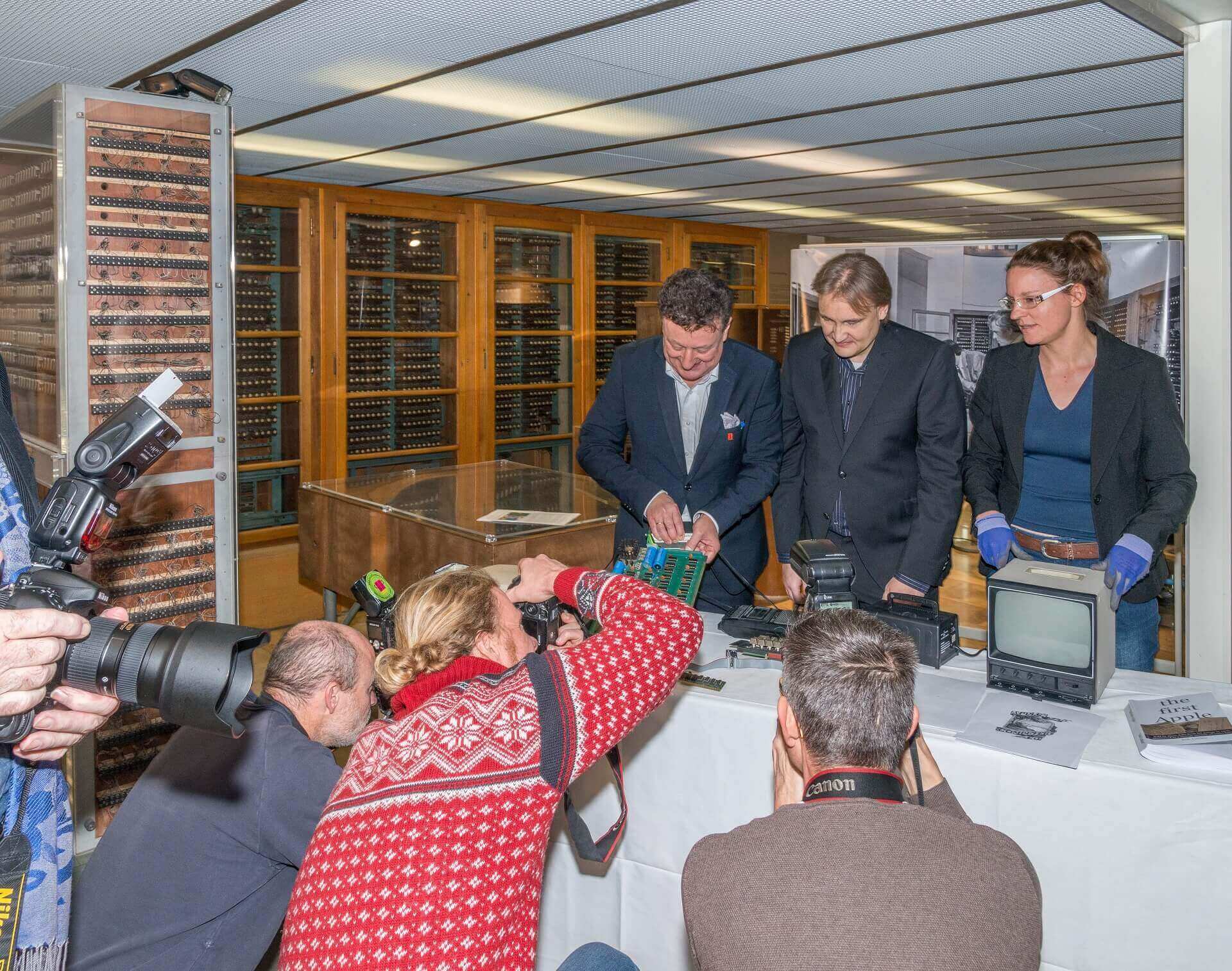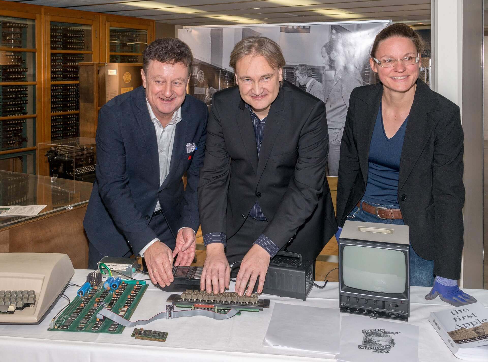 On November 13, 2017 Press conference Copson Apple-1 in front of historic Zuse computer. From left to right: Director Wolfgang M. Heckl, lender Achim Baqué, curator Anja Teuner.