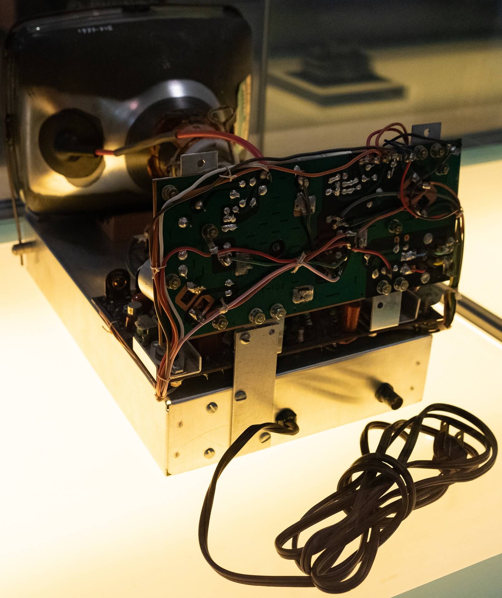 Some IC sockets on the breadboard (DM7402N, 2x DM7420). Piggybacked DRAM chips. Many wires and capacitors added around the DRAM chips. Video connector soldered to the mainboard. Both 8T97 chips changed (date code 7842). Number 1999-915 written on the front (probably by the museum).