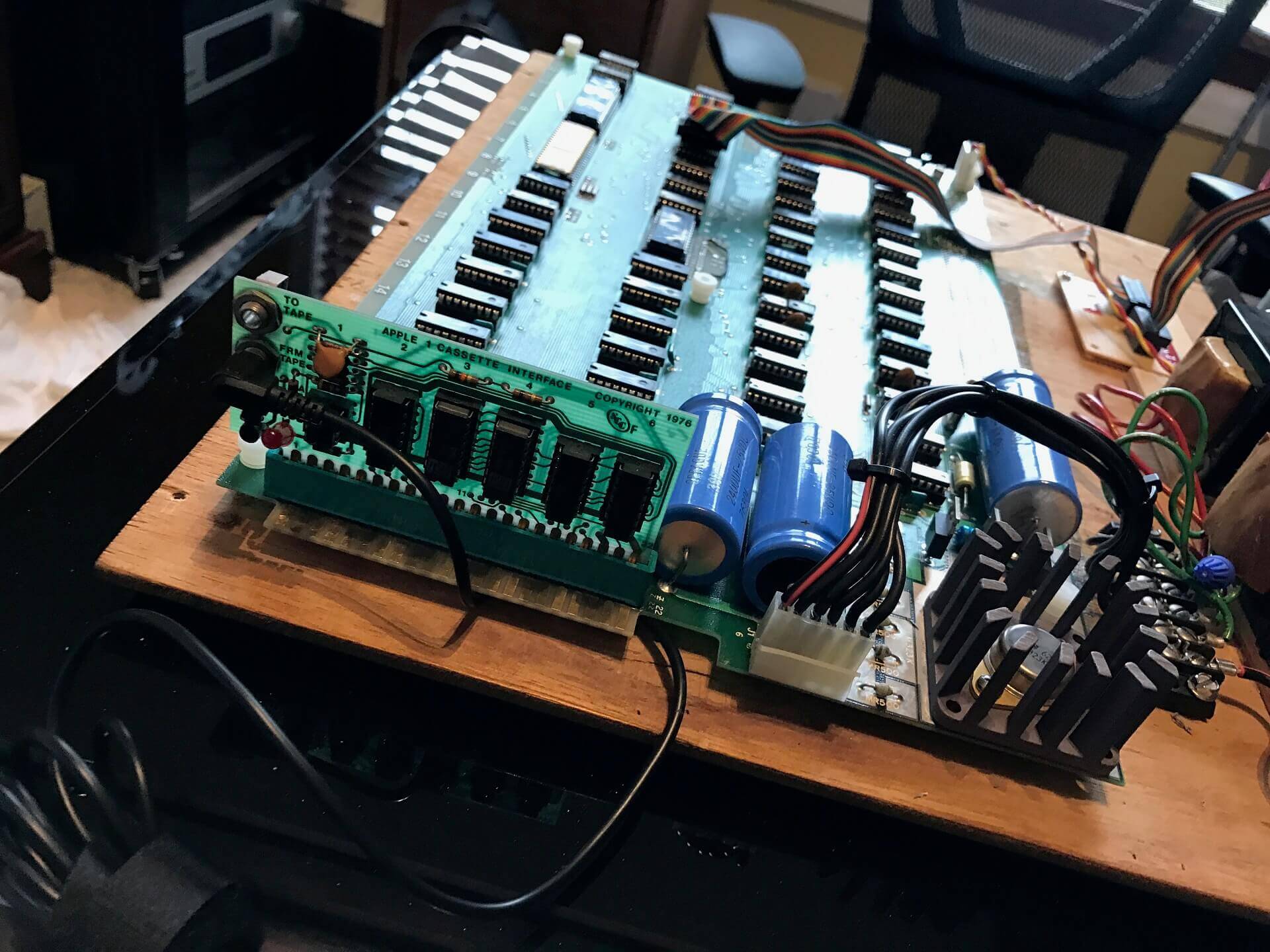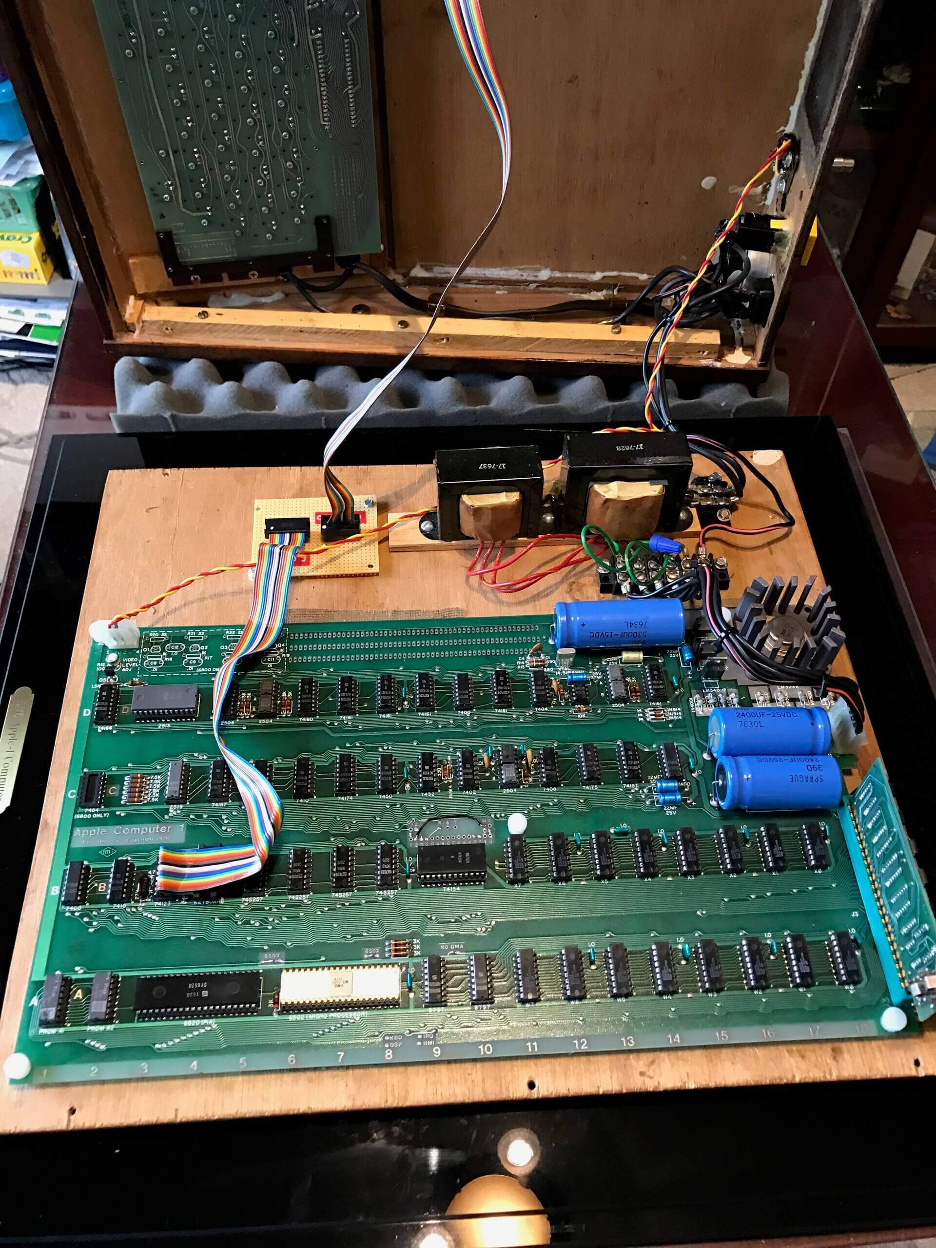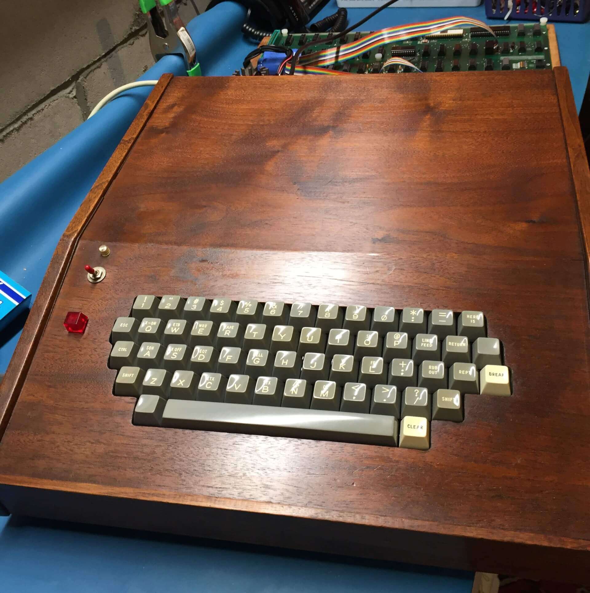 The system is known as the “Toggle Switch” Apple-1 since it has an original Byte Shop case but features a toggle power switch and neon power indicator.