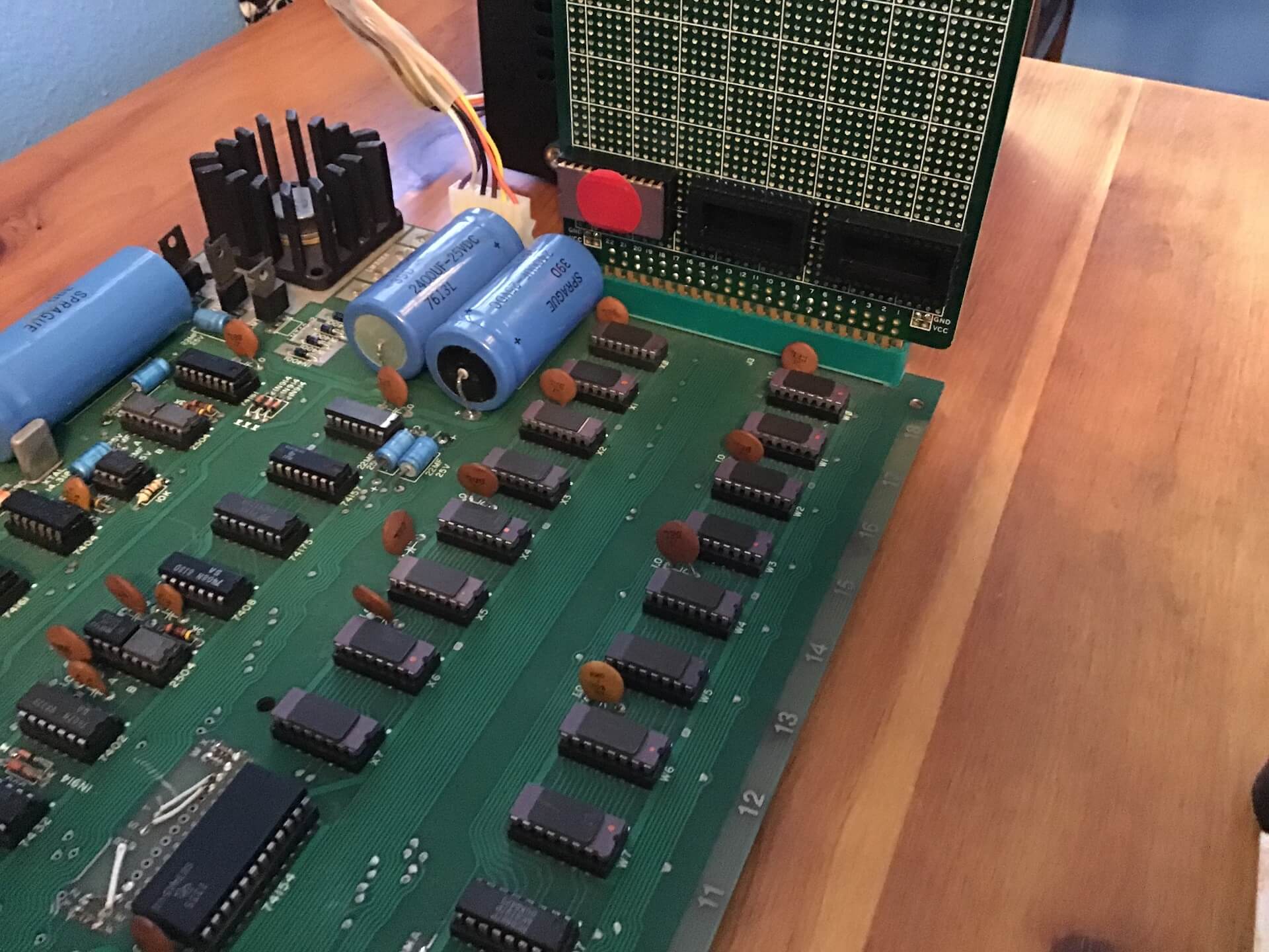 A friend who worked as a repair tech at the computer store I worked in owned an EPROM burner that attached to his Apple II and could burn the Apple-1 BASIC for me. He also taught me wire wrapping, which was used to create the expansion card, which is really just a blank card with EPROM sockets. Another friend had hardware experience as well and both of these friends had oscilloscopes, and more importantly, knew how to use them. It was a matter of putting all the parts together, using the docs to determine how to place the jumpers for addressing the RAM chips and the EPROM card and some troubleshooting before we finally got it to work. Running down the various parts was a challenge because in 1984 many of the chips required were already obsolete. Luckily, my experience from the computer store meant I knew various suppliers in town, and one in particular which I knew had a lot of old inventory. Some correspondence I have shows I was still trying to find some of the parts in late 1985. But eventually, we got it working in either 1985 or 1986.