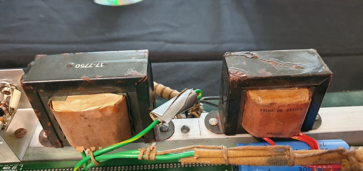 Original Apple Cassette Interface. Transformers TRIAD F-31X and F-40X from 1977. Mounted on a metal frame. Keyboard from 1977.