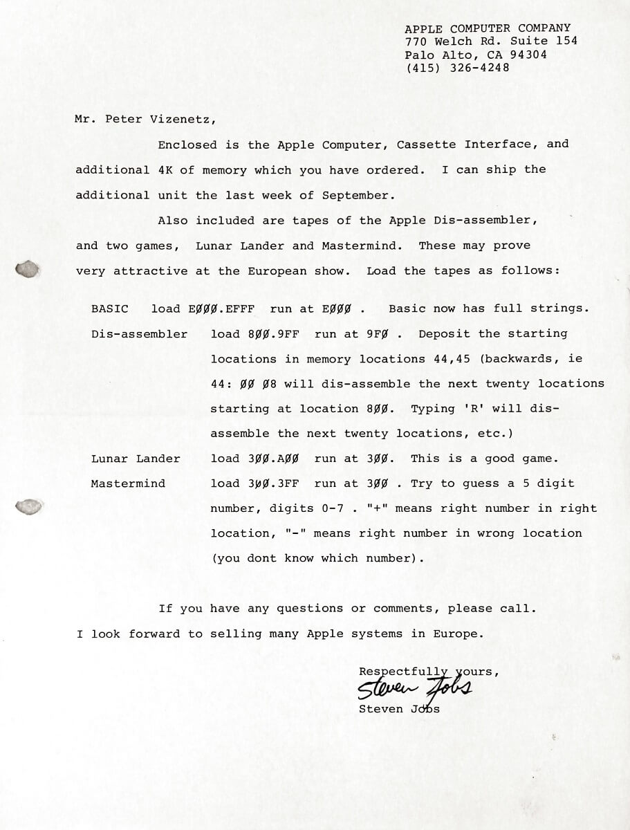 It is not directly linked to the Apple-1 but is pretty interesting. Steve Jobs' handwritten and signed job application from 1973 is very unique.